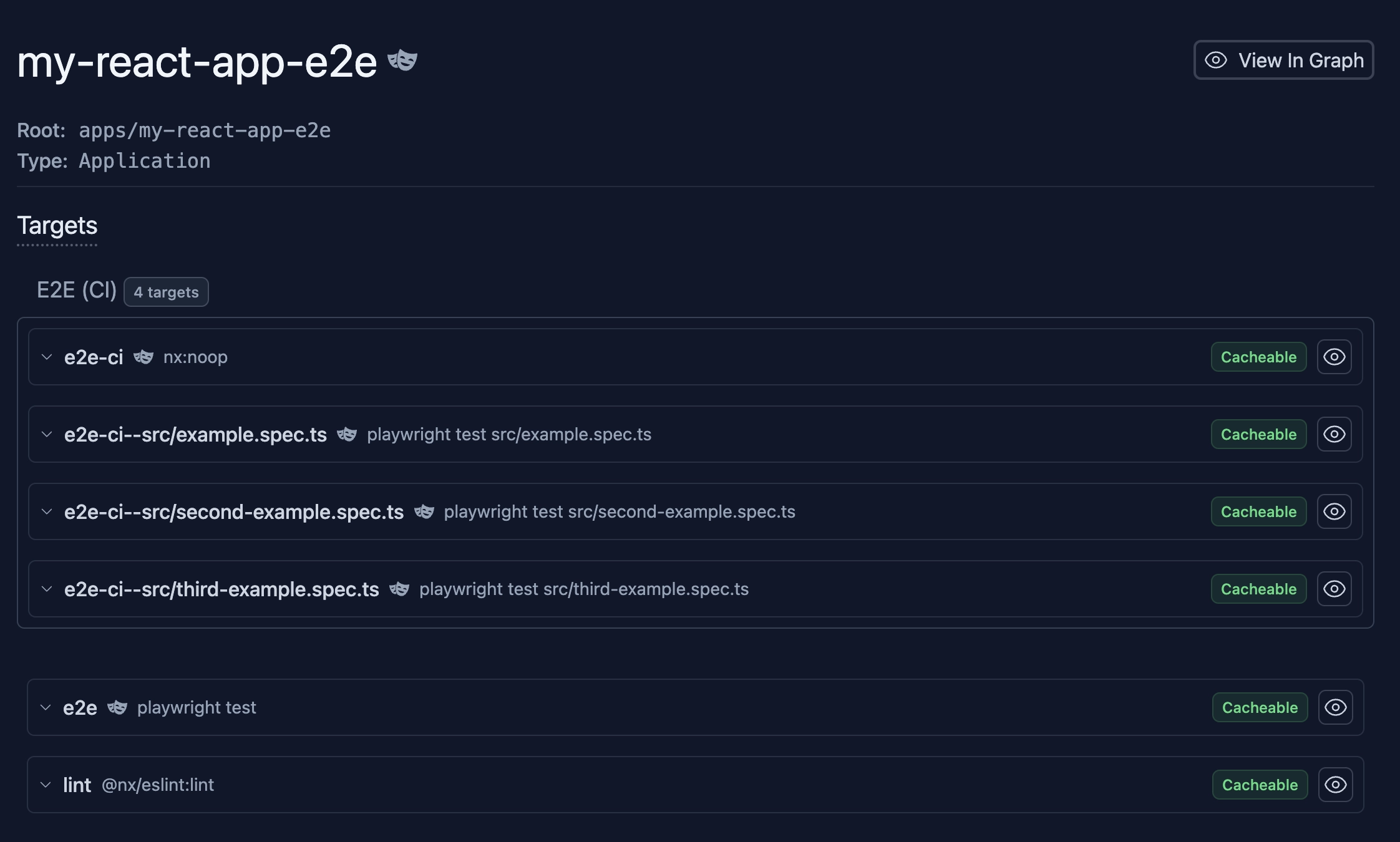 All Nx Plugins that support this concept of "Atomization" will do this automatically for you, and if you are writing a custom plugin for your own tool or special use-case, you can implect this inferrence to group your targets in Nx and Nx Cloud tooling as well. We'll be adding more documentation on how to implement this in your own plugins in the future.